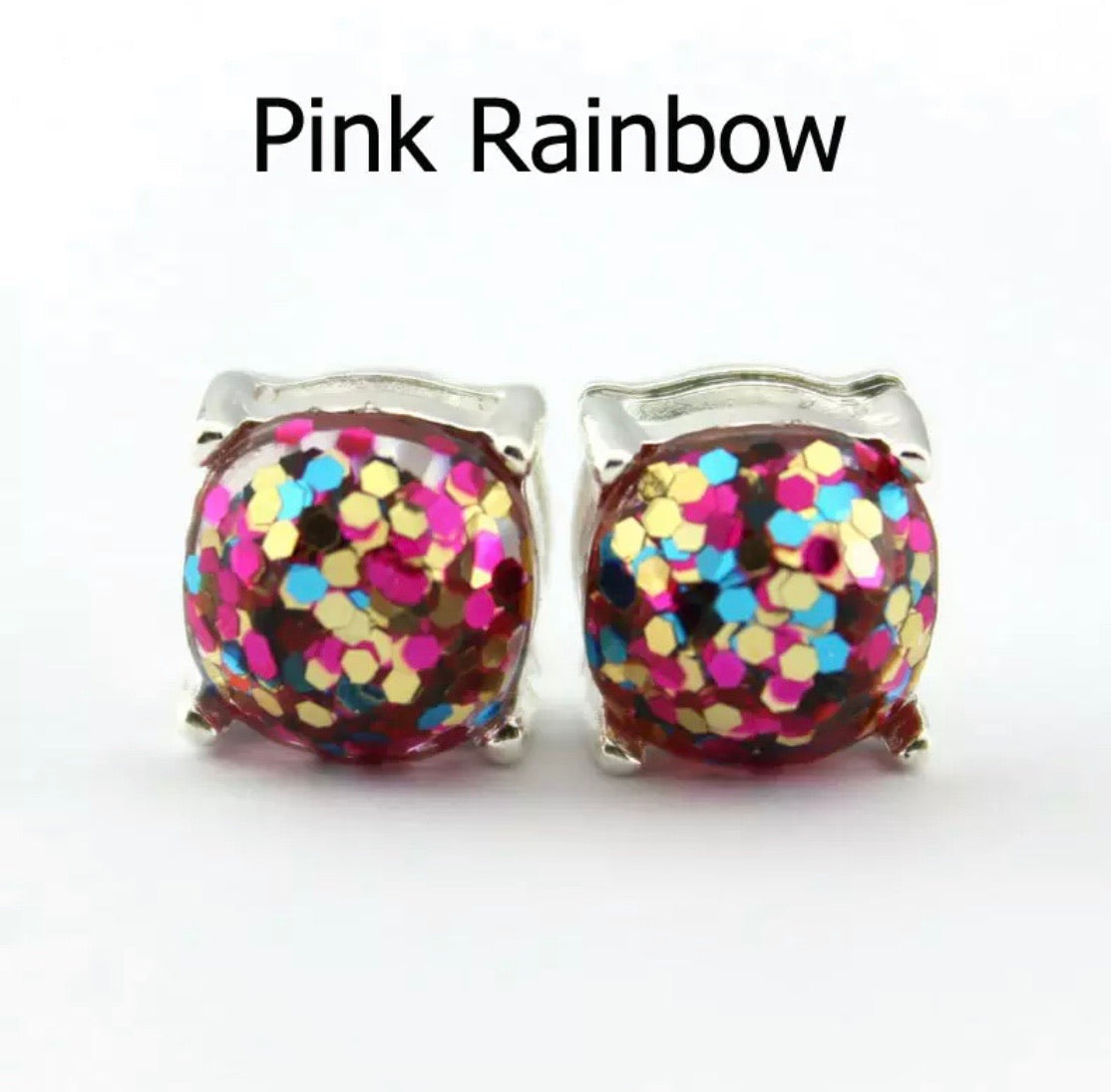 These stainless steel glitter studs are sure to turn heads! The glitter sure does sparkle.